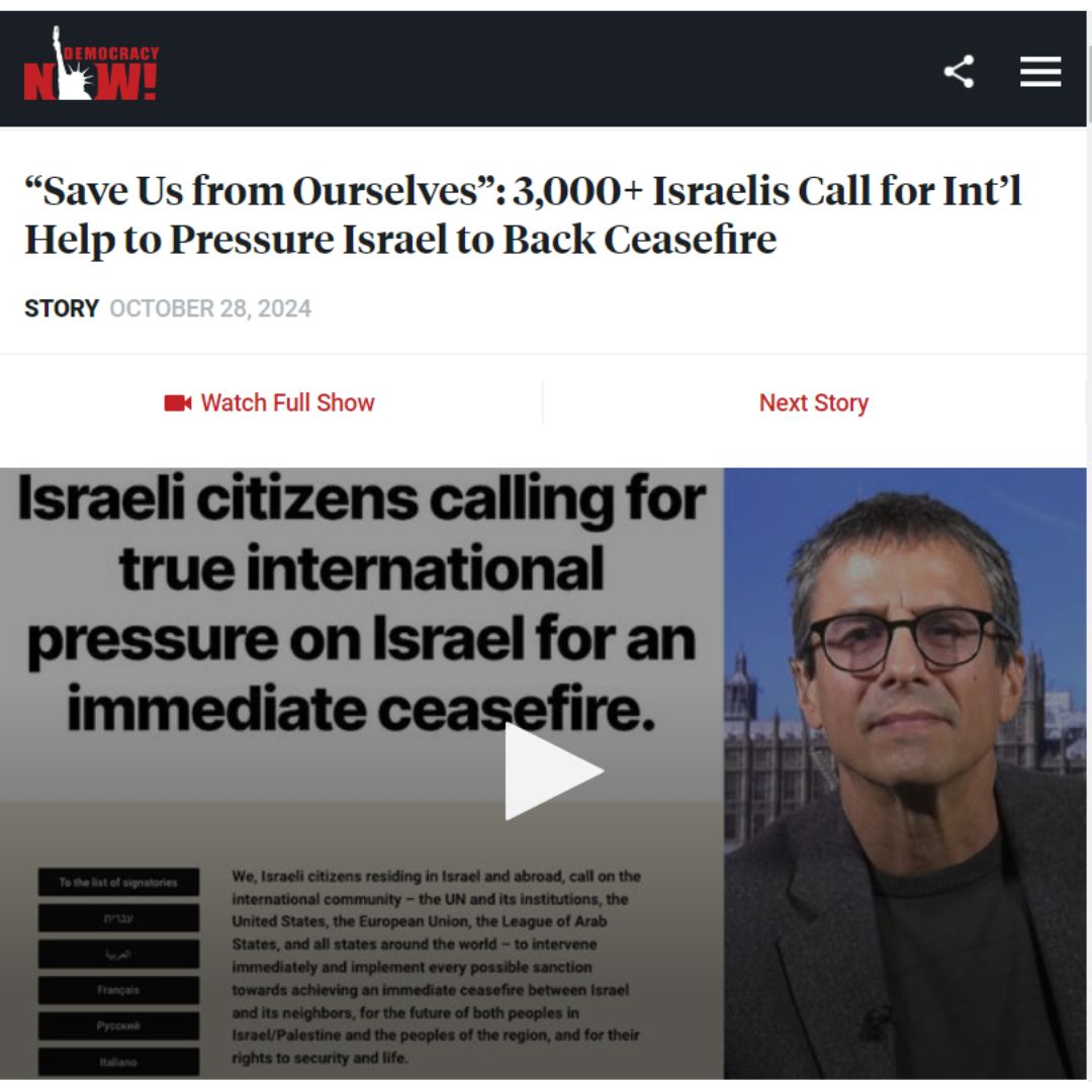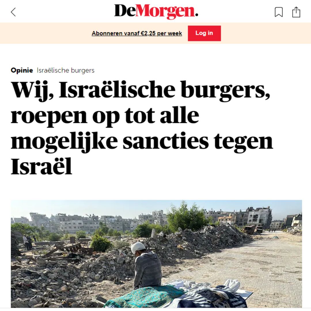 Meer dan 3.000 Israëlische burgers hebben deze brief getekend, die in twaalf talen is verschenen en waarin ze de internationale gemeenschap oproepen Israël ‘met alle mogelijke sancties’ te dwingen tot een onmiddellijk staakt-het-vuren.